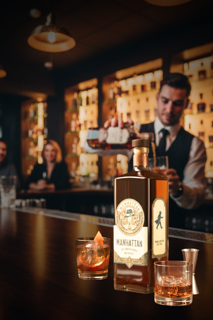 Premium American Blended Single Malt 12-Year-Old Whiskey, marketed under the brand name MANHATTAN5